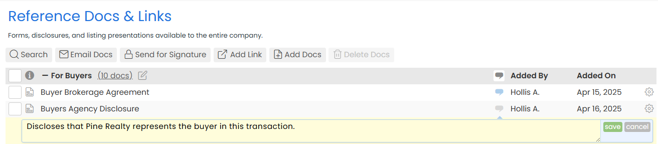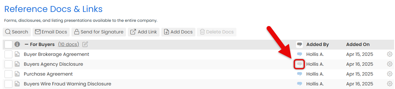 The Reference Library is your company’s internal knowledge hub. It holds documents and links your team uses often — like onboarding packets, local disclosure forms, how-to guides, or broker resources.